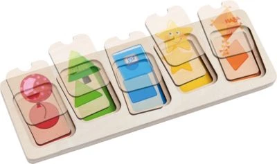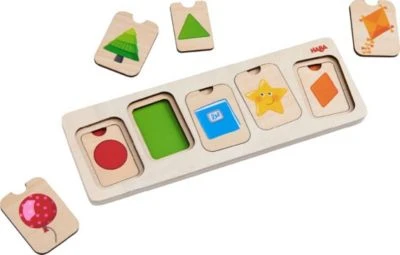 Dieses Puzzle trainiert auf spielerische Weise das Farb- und Formenverständnis bei Kindern. Die zehn detailreich gestalteten Puzzleteile lassen sich in insgesamt drei Schichten beliebig verteilen. Dank kleiner Aussparungen für die Finger sind sie besonders leicht anzuheben. Hochwertiges Holz verspricht zusätzlich langlebigen Spielspaß.