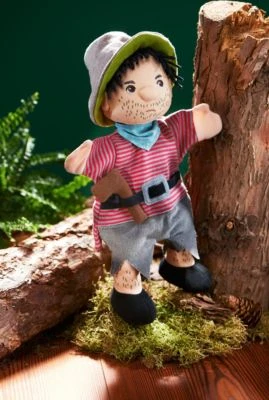 Der raubeinige Räuber ist Teil der lustigen HABA Handpuppen-Truppe. Die Handpuppe ist 30 cm groß und passt kleinen und großen Händen. Die Bewegungen erwecken die witzige Stoffpuppe zum Leben. In selbst erdachten Theaterstücken lassen kleine Puppenspieler*innen ihrer Fantasie freien Lauf. Das fördert die Sprachentwicklung und sorgt für großartige Unterhaltung. Ist der Räuber ein Schurke oder ein guter Freund? Das entscheidet jede Geschichte aufs Neue. Vorhang auf für die zauberhaften Handpuppen von HABA!