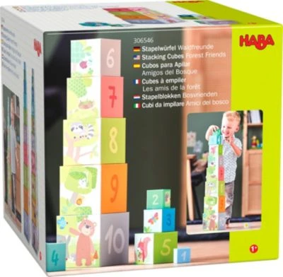 Zehn putzige Waldtiere freuen sich schon auf das nächste Zählabenteuer mit dem Stapelwürfel Waldfreunde von HABA. Bauen Kinder ab einem Jahr den Stapelwürfel zusammen und ordnen die Motive auf den Seiten richtig einander zu, entstehen eine Zahlenreihe, eine Tierpyramide und ein hoher Baum. Die Stapelwürfel aus stabiler Pappe lassen sich auch nebeneinander stellen für vielfältigen Stapel- und Sortierspaß. Das Motorikspielzeug für Kleinkinder ist robust verarbeitet, damit kleine Zahlenfans lange Freude an dem Stapelspiel haben werden.